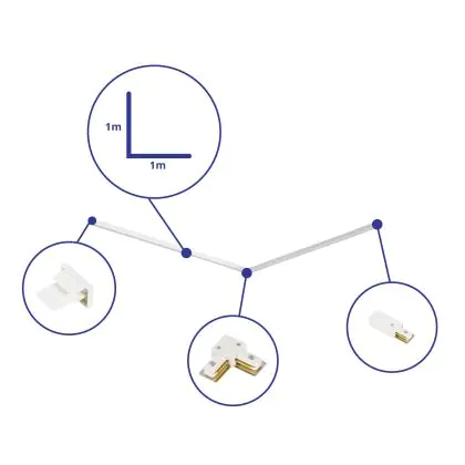 Bright Choice Rail Set 1-Fase L 1 x 1 Metro Bianca | incl. Tappo Di Chiusura, Connettore di Alimentazione e L -Connettore