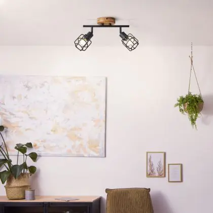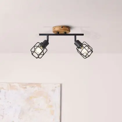 Brilliant Gwen Luce da soffitto Metallo Legna Nero | Adatto per 2x E14