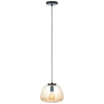 Brilliant Kaizen Luce Pendente Vetro Luce Pendente Metallo Nero Beige | 250mm - Adatto per 1x E27