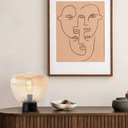 Brilliant Lampada Da Tavolo Kaizen Vetro Metallo Nero Beige | 250mm - Adatto per 1x E27