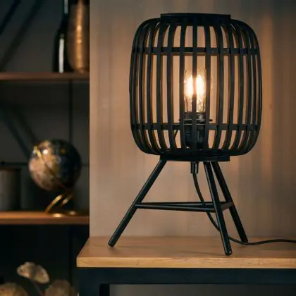 Brilliant Lampada Da Tavolo Legnarow Metallo Bambù Nero Legna | Adatto per 1x E27
