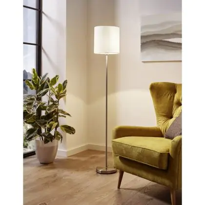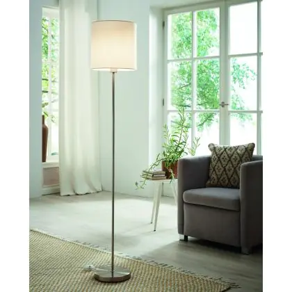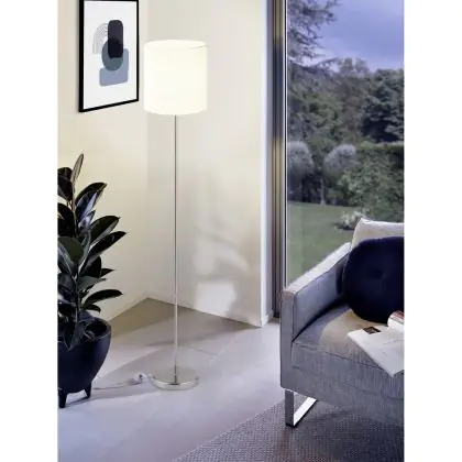 Eglo Lampada da terra Pasteri Acciaio Nichel Satinato Bianca | IP20 - Adatto per 1x E27