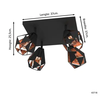 Eglo Luce da soffitto Carlton 7 Acciaio Nero Rame | IP20 - Adatto per 4x E27