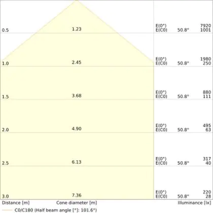 L'apertura del fascio luminoso indica l'angolo del fascio di luce proveniente da una lampada o lampadina. Si misura in gradi (D) e più piccolo è l'angolo, più piccola è l'apertura del fascio di luce.