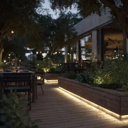 Questa fonte di luce può sempre essere utilizzata per l'illuminazione d'accento. Per usarla invece come illuminazione generale bisogna considerare l’emissione luminosa e l’apertura del fascio di luce. Questa striscia LED è lunga 5000 mm e ha una potenza luminosa di 640 Lumen. Dividendo il numero di Lumen per la lunghezza della striscia LED troverai la potenza luminosa per metro. Le strisce LED hanno generalmente un fascio di luce ad ampio angolo, che non fa eccezione per questo articolo: °. Clicca qui per scoprire quanti lumen servono in ogni stanza.